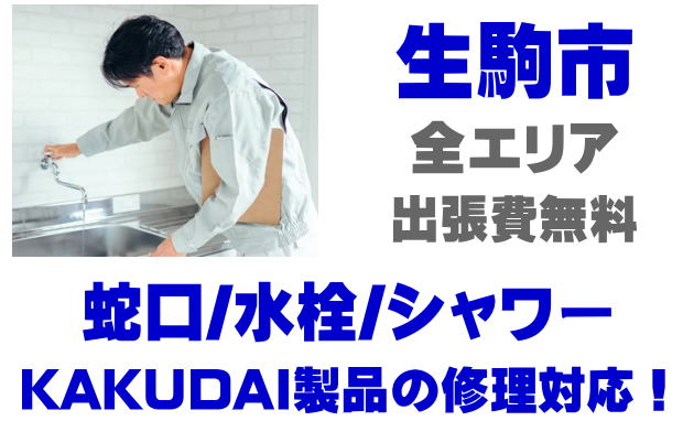 生駒市で水栓メーカーKAKUDAIの修理業者をお探しなら当社までお気軽にお問い合わせください。蛇口の水漏れ、シャワーの故障などカクダイ製に関するトラブルなら何でもご相談ください。