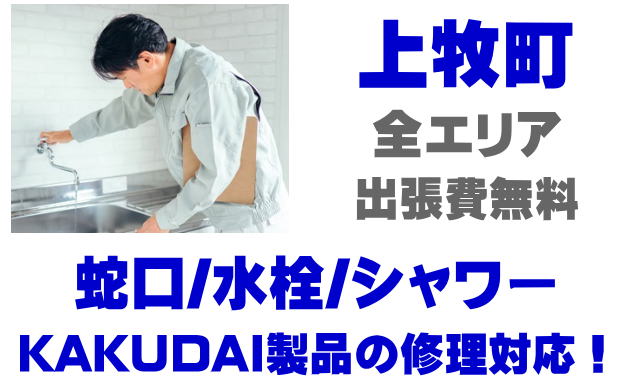 上牧町で水栓メーカーKAKUDAIの修理業者をお探しなら当社までお気軽にお問い合わせください。蛇口の水漏れ、シャワーの故障などカクダイ製に関するトラブルなら何でもご相談ください。